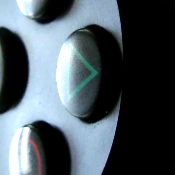 Mein Controller ist schwarz. Er hat bunte Knöpfe und LEDs. Sie leuchten in verschiedenen Farben.
